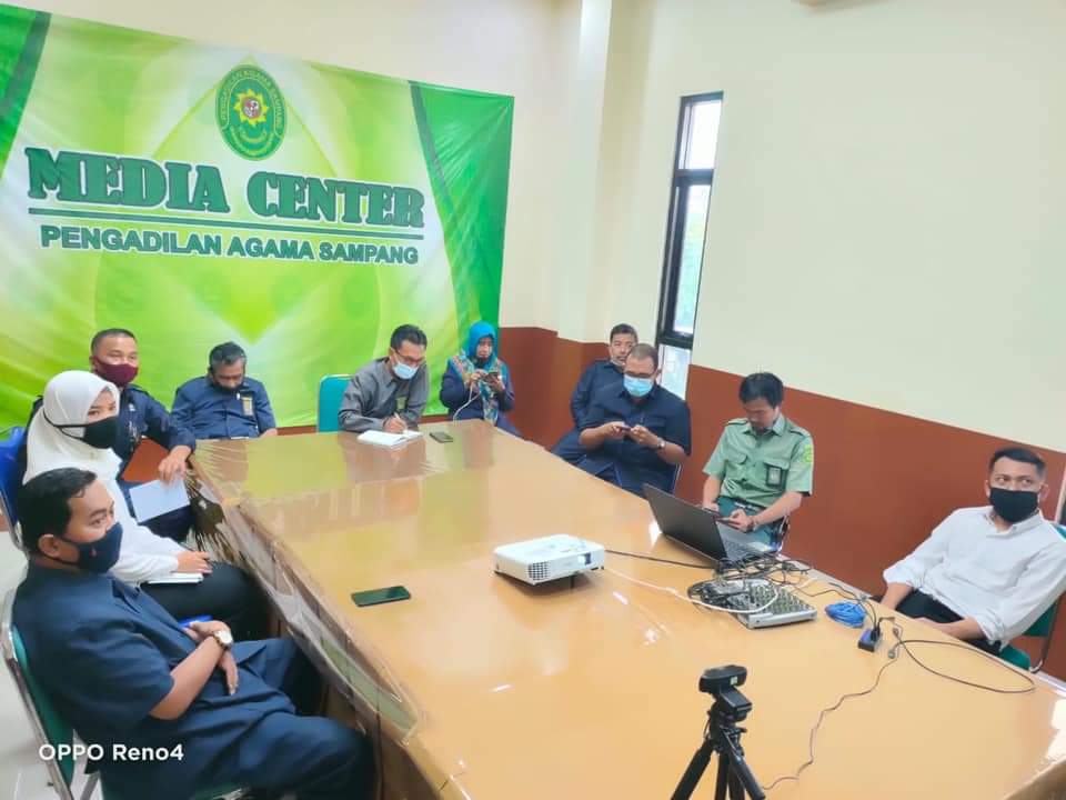Pengadilan Agama Sampang mengikuti Pembinaan dan Evaluasi Pelaksanaan Pembangunan Zona Integritas menuju WBK/WBBM secara daring oleh Direktur Jenderal Dr. Drs. Aco Nur, S.H., M.H. Dihadiri Ketua Pengadilan Agama Sampang, Ketua ZI serta Koordinator Area bertempat di Media Center.